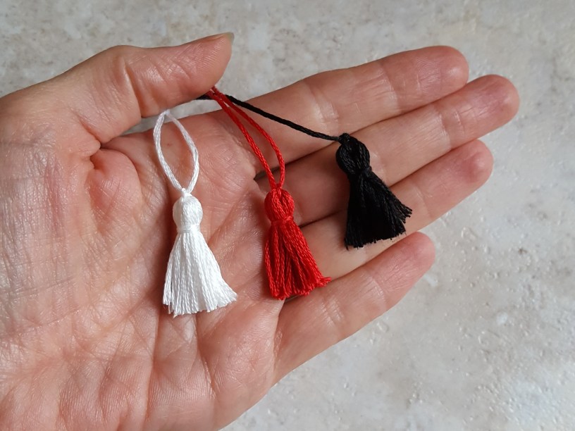 That’s it! Hang the tassels on your purse, attach them to your key chain, or use as package tie-ons!