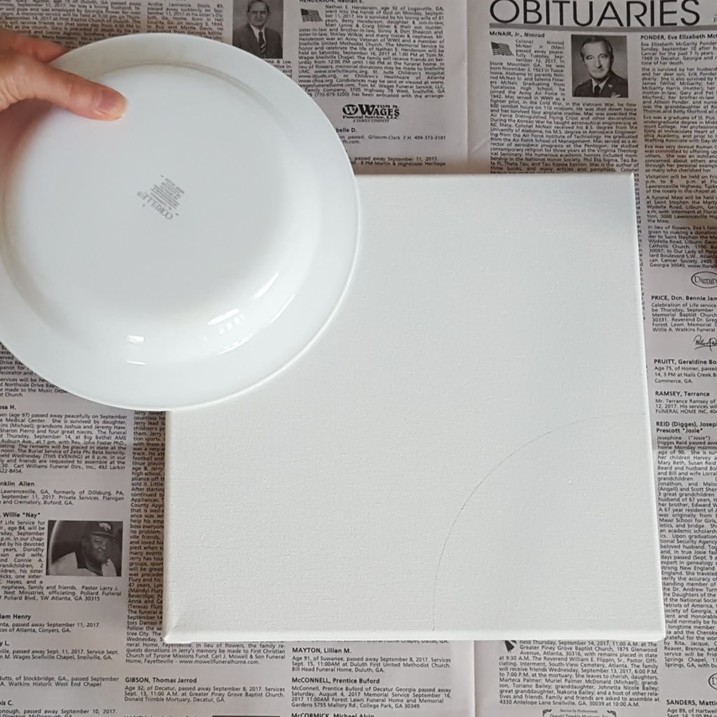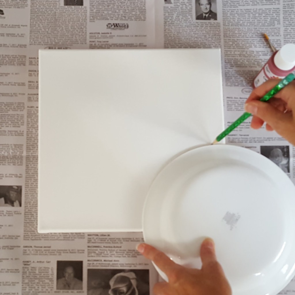 - Turn the bowl upside down, and lay it on one corner of the canvas. Use the pencil to lightly trace the curve.