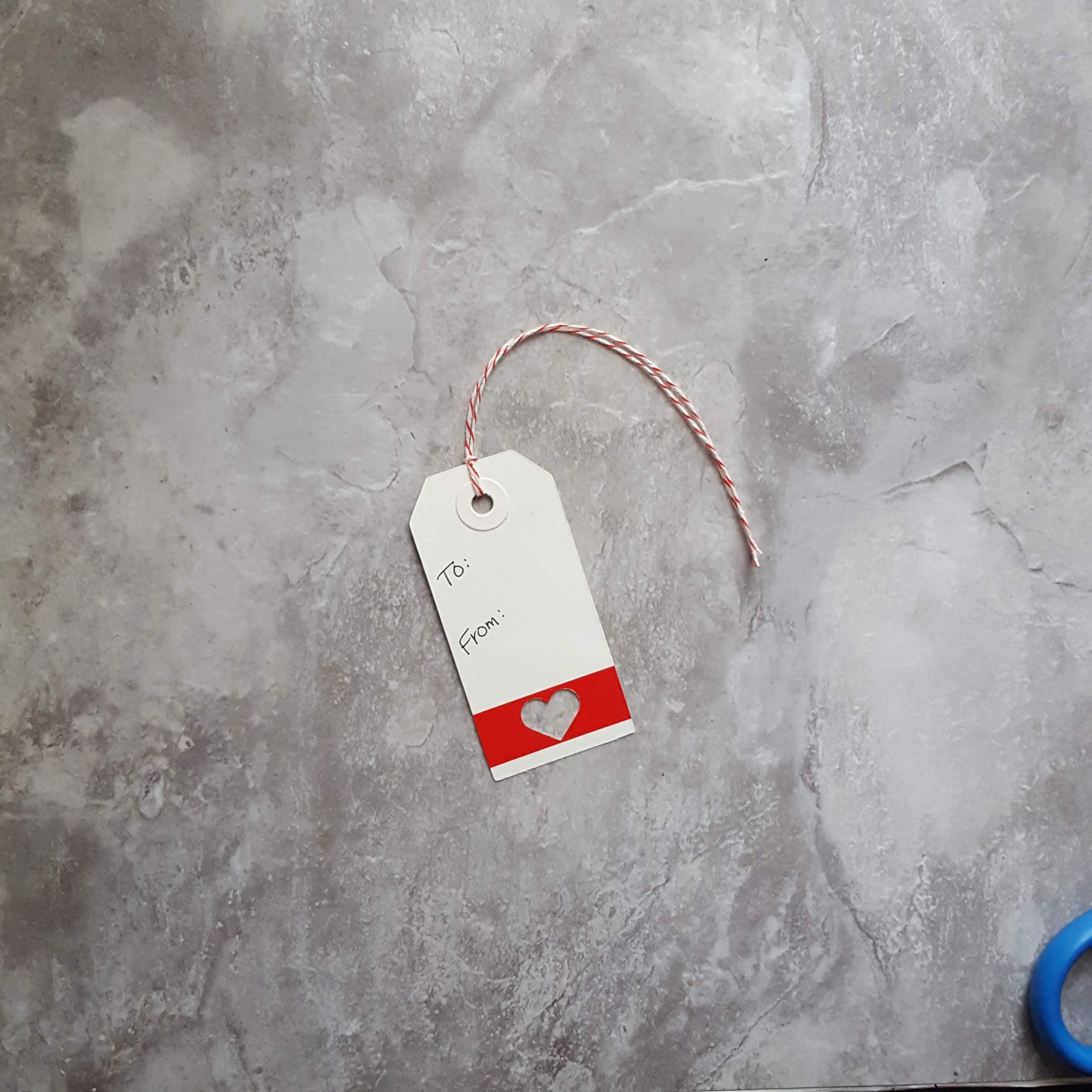 - Flip the tag over and add “To” and “From” to the back of the tag