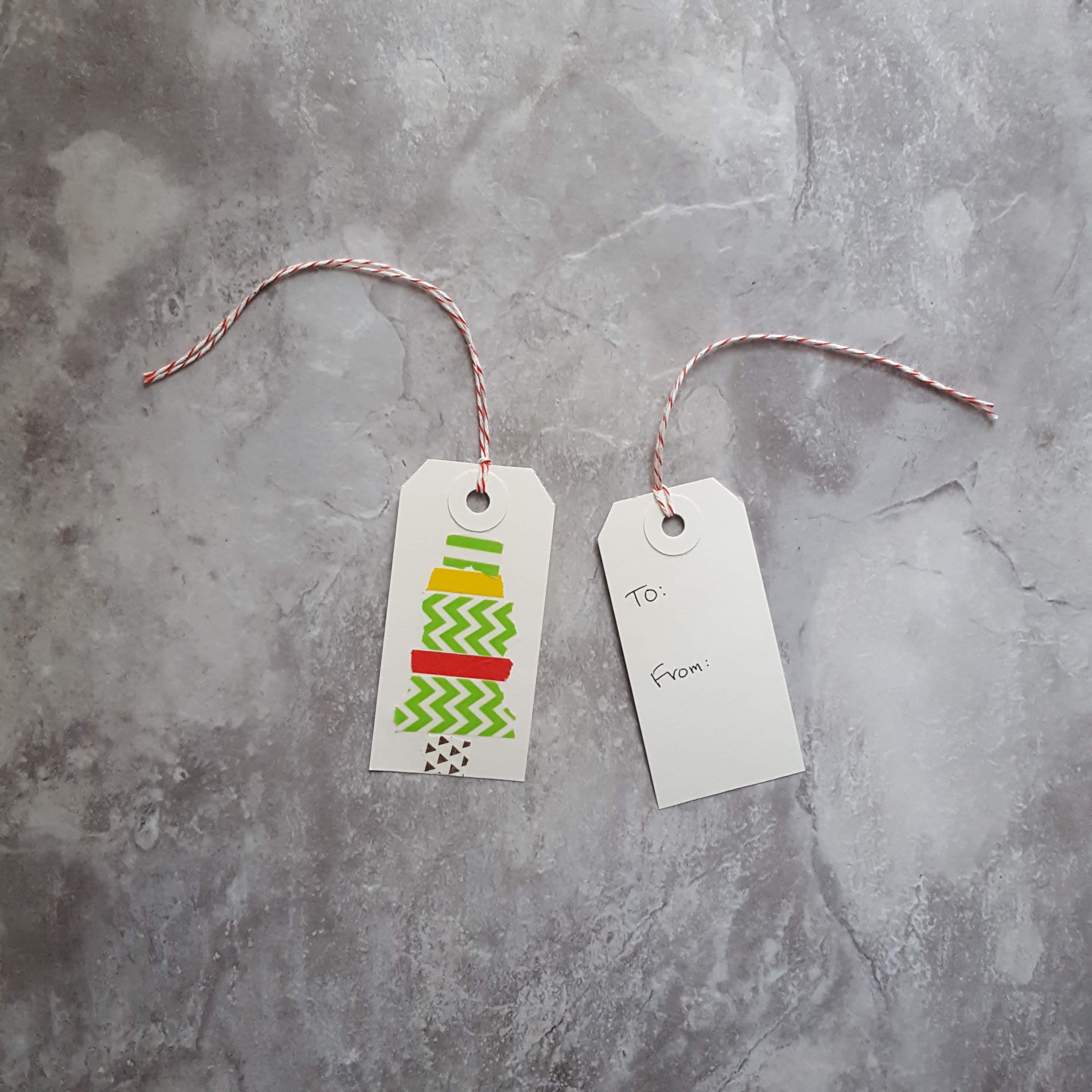 - Apply a square of Washi tape to the bottom of the tag for the “trunk”