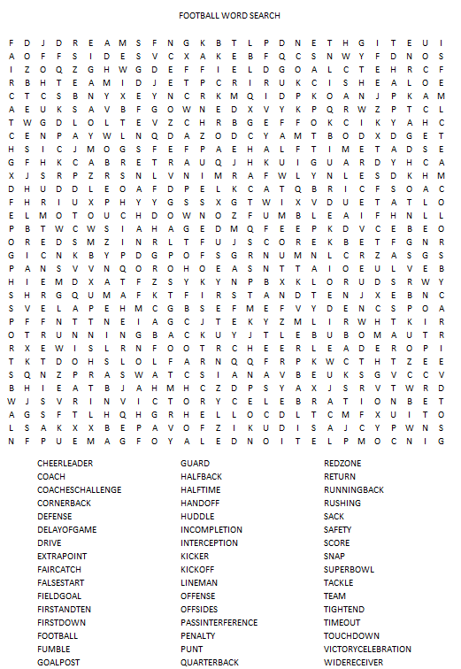 Download the free football word search file below, print out enough copies for everyone, and have a competition to see who can find all of the words first!