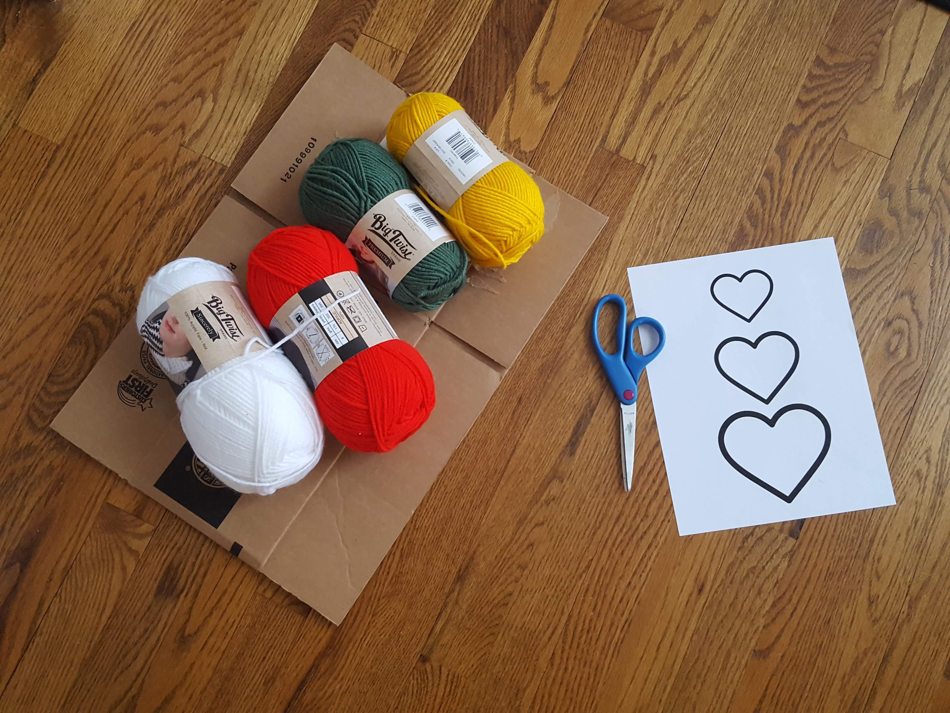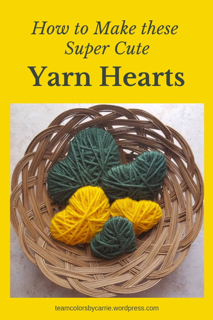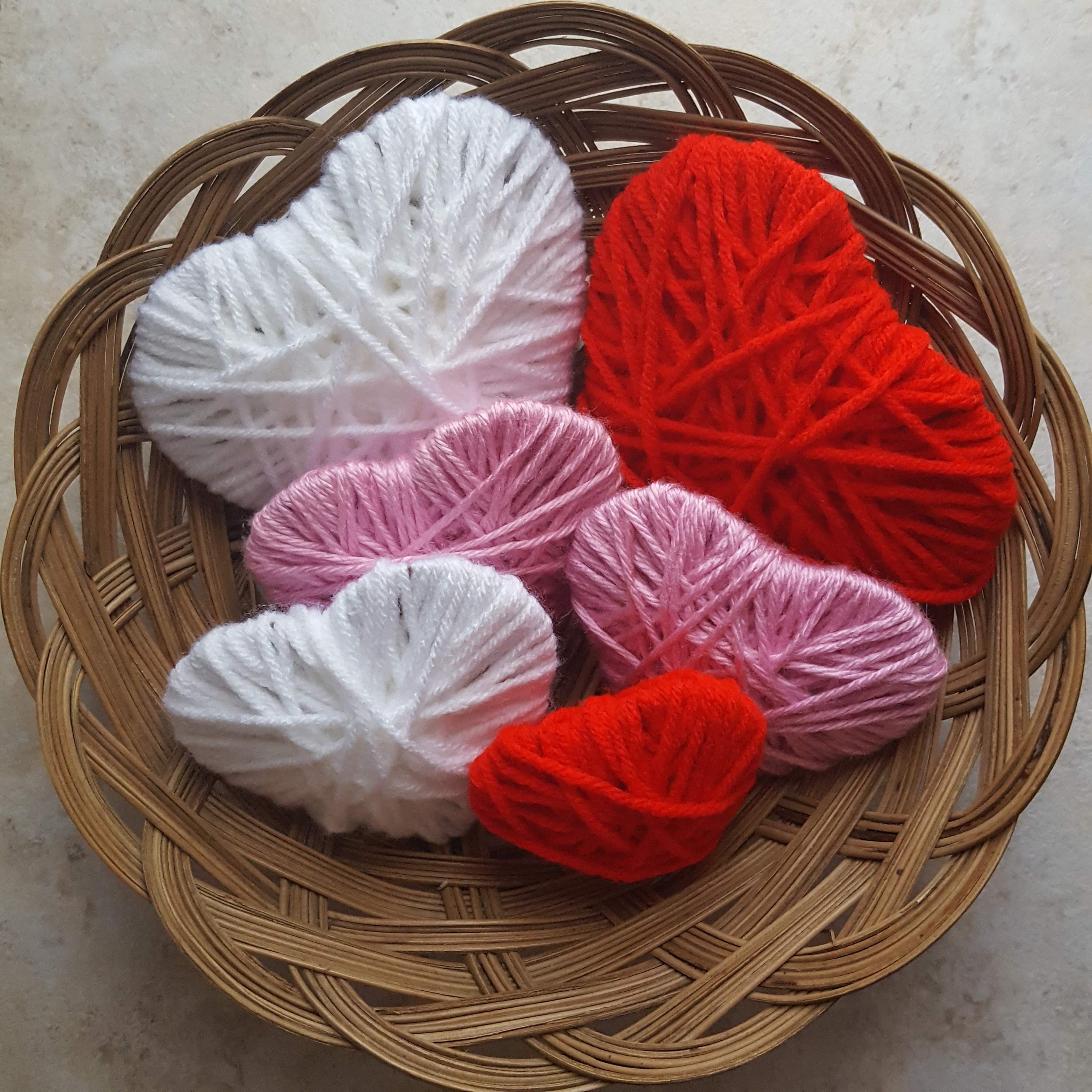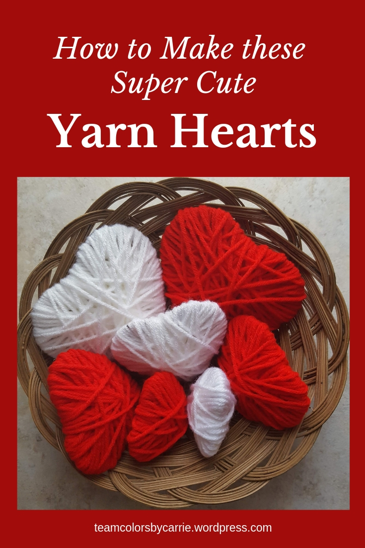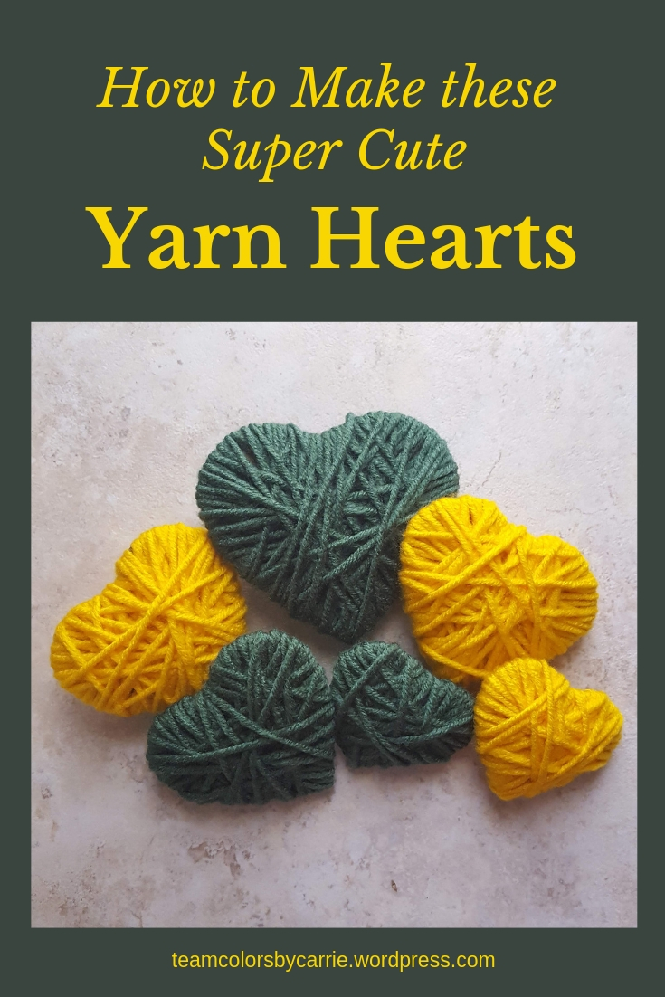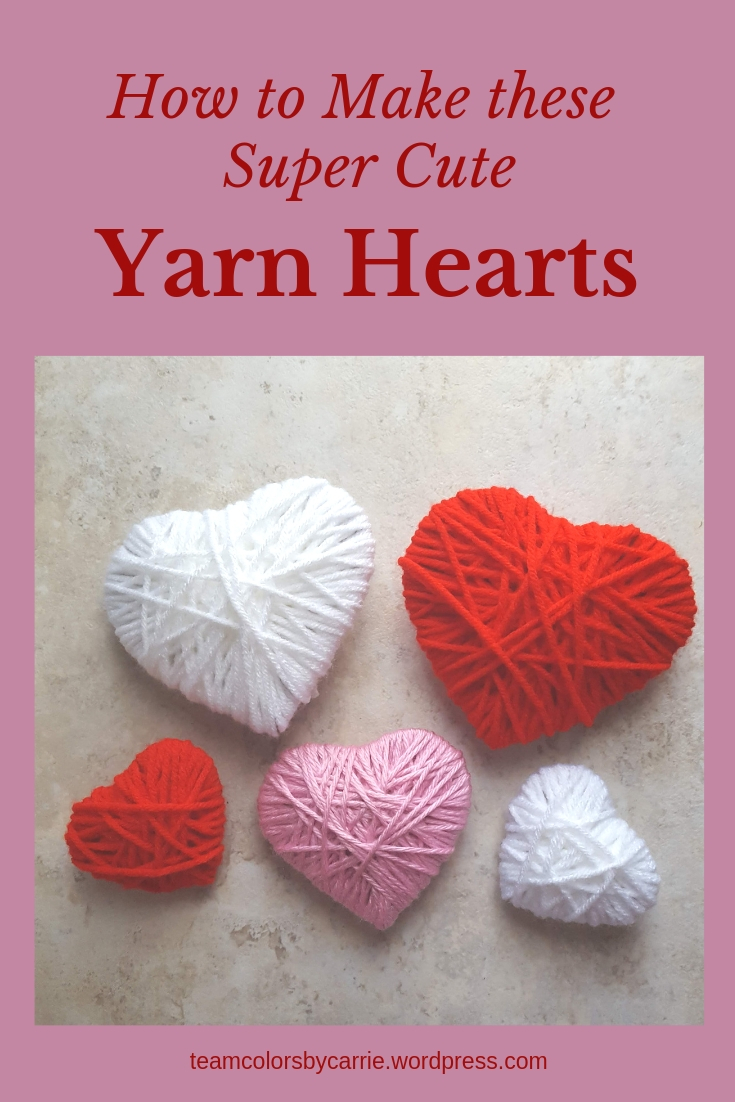 Today I’m going to show you how to create adorable little hearts using just some yarn and a piece of cardboard! Use red, white or pink yarn for some cute Valentine’s decorations. Use your favorite sports team colors to add something fun to your game day party décor. Or match the colors in your living room, den or bedroom for some cute and cozy knick-knacks!