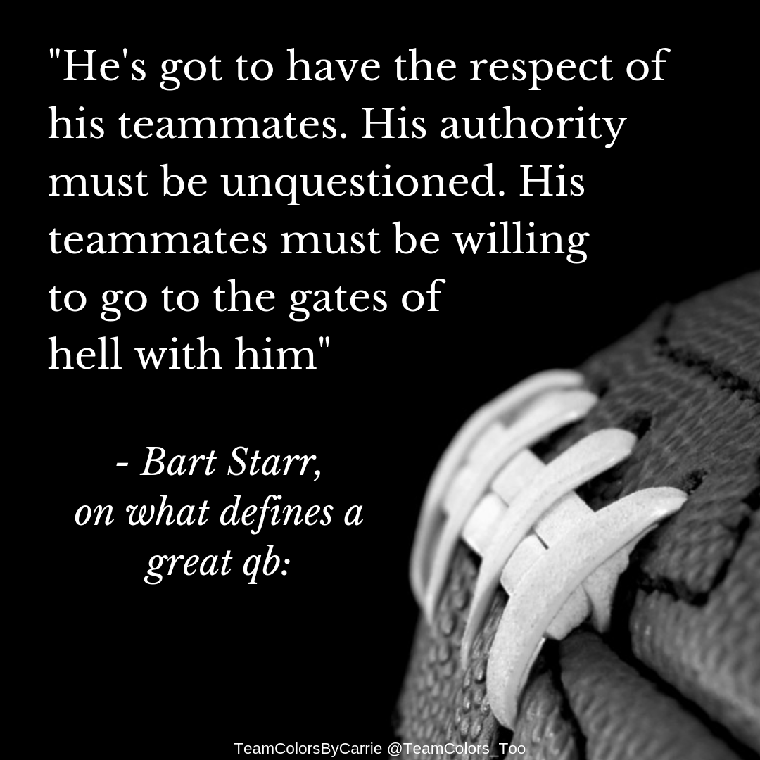 Let’s start with the many reasons I’ve admired Bart Starr as a football player, and leader of those Lombardi era Packers: