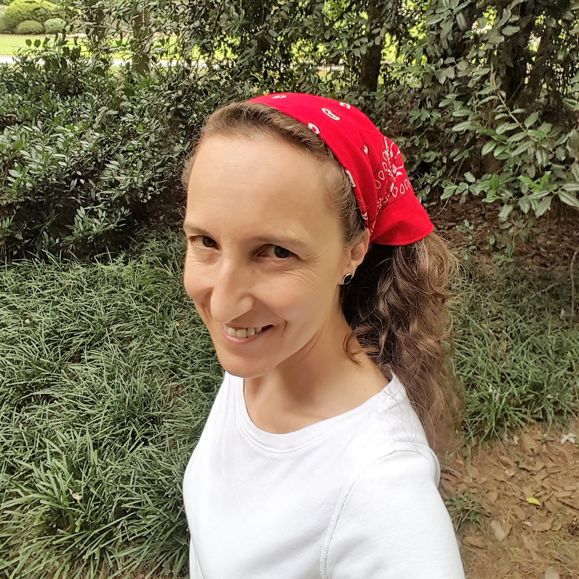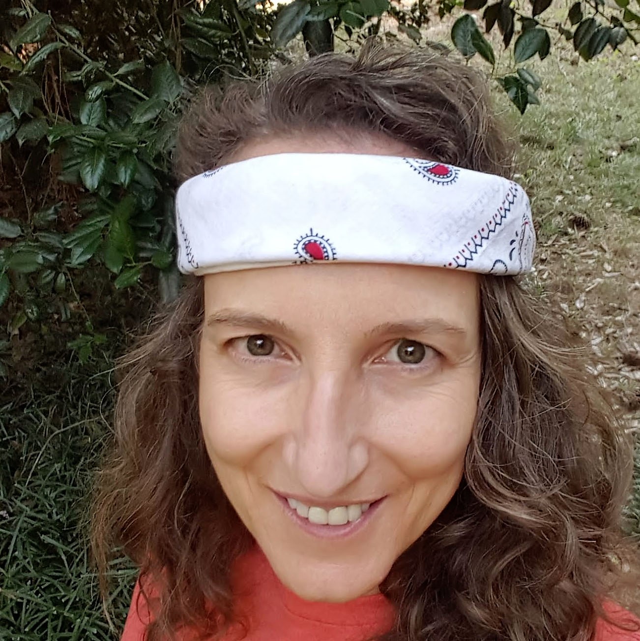 Another easy way is with a top knot or messy bun. I like the bandana as a head wrap to tame those flyaway hairs!
