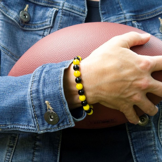 Or for a fun twist, add a football patterned bracelet, or one with a cute football bead!