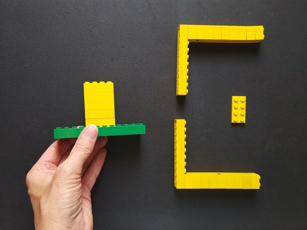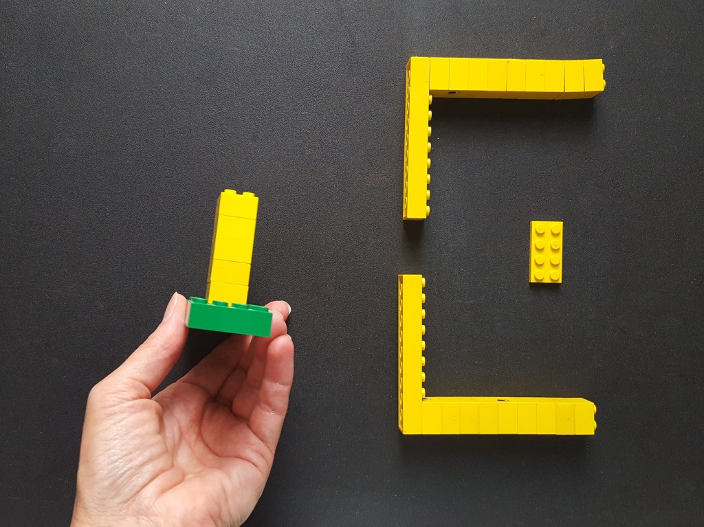 I’ll show you a closer look at each section, in case you need some help (or just request some help from your favorite young block builder)! I used rectangular bricks for the support post: