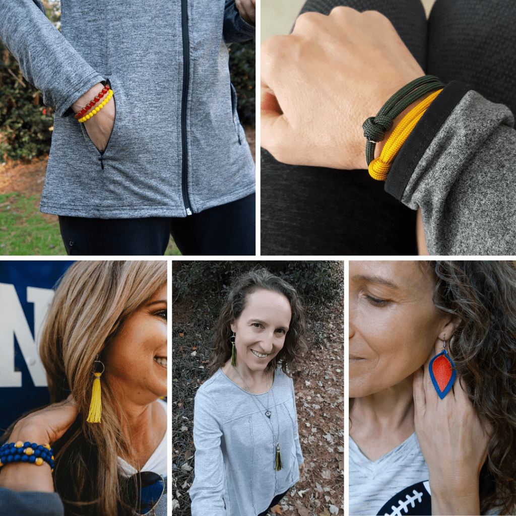 Ten – Jewelry – I couldn’t make this list without my favorite game day accessory, because jewelry is such an easy way to change the look of your favorite outfit. Mix and match earrings, bracelets and necklaces that you’ll find at Team Colors By Carrie!