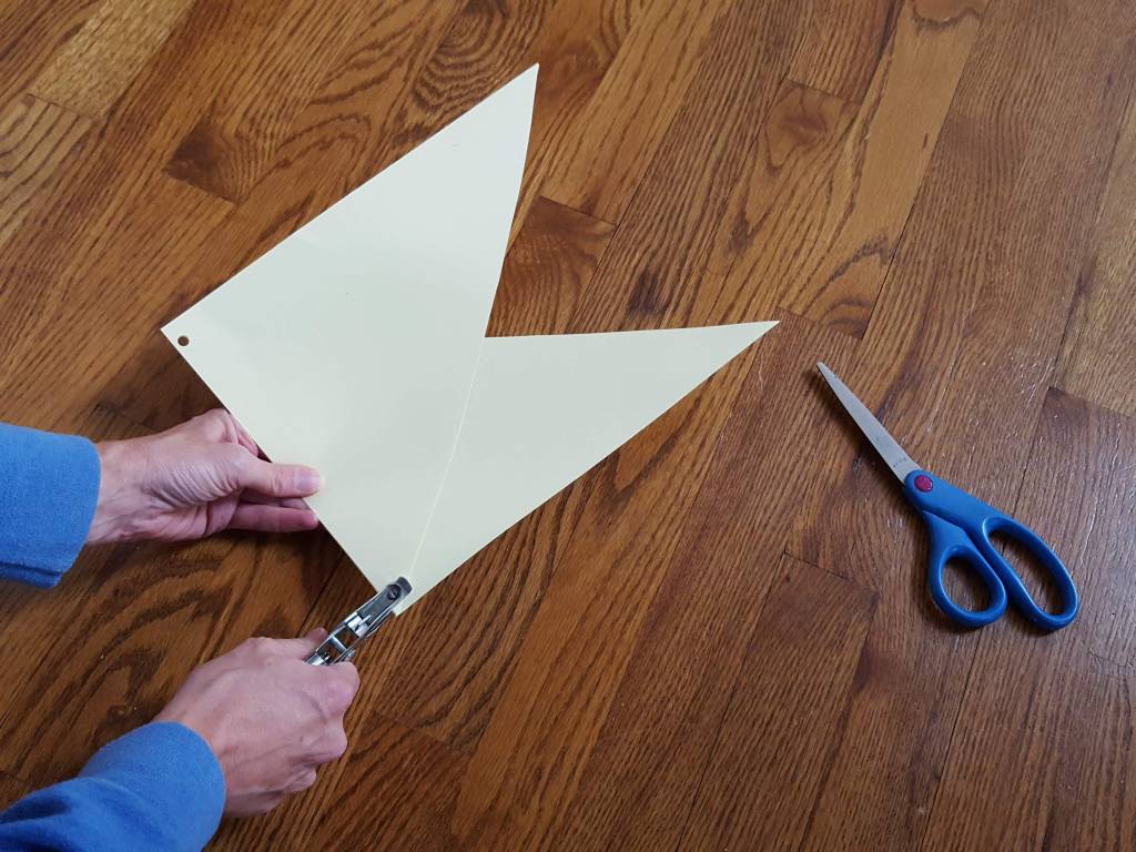 - Cut a piece of paper diagonally from corner to corner. If you need help cutting a straight line, you can use a ruler to draw a line as a guide.