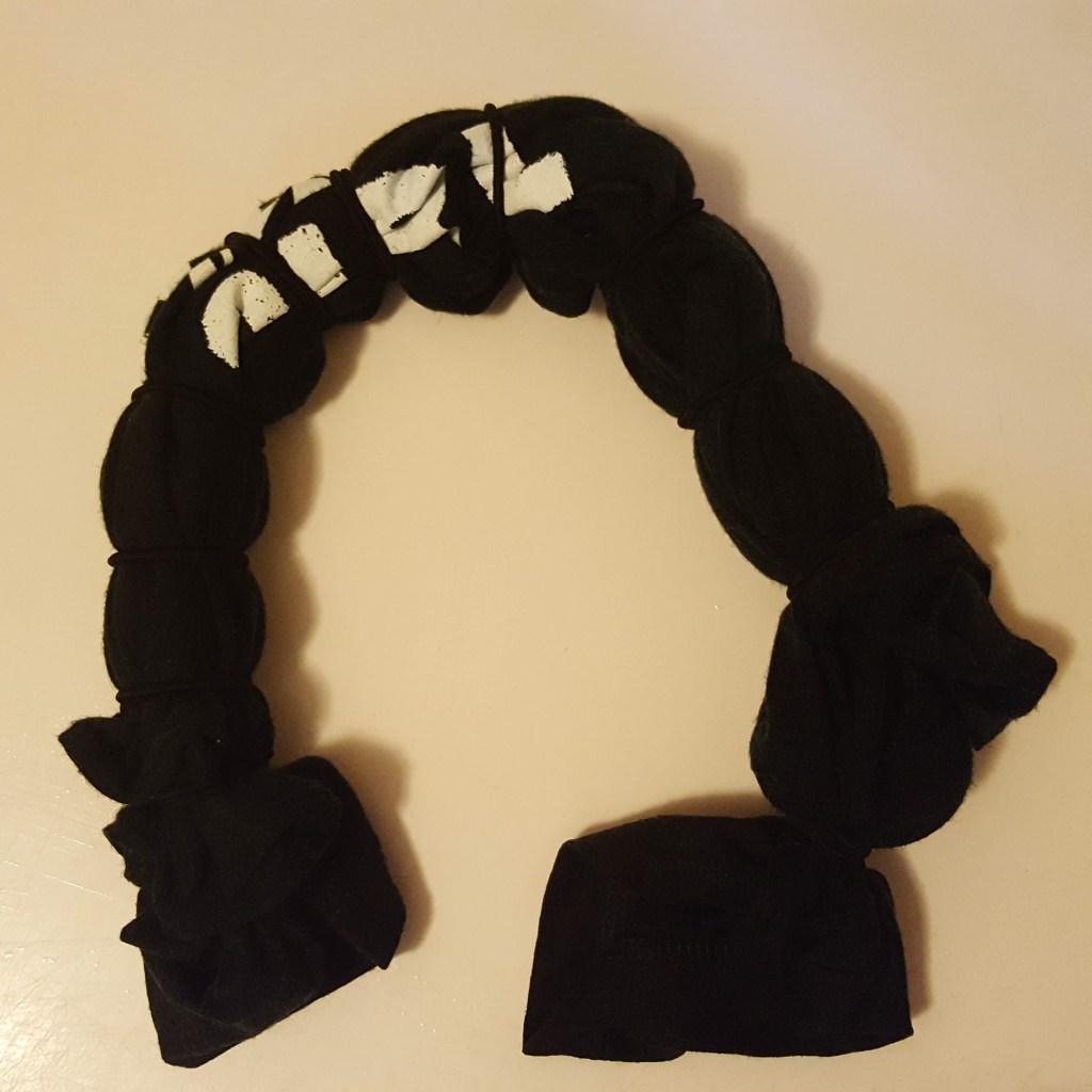- Black shirt – grabbed a spot on the shirt over the screenprinted area, and twirled it around