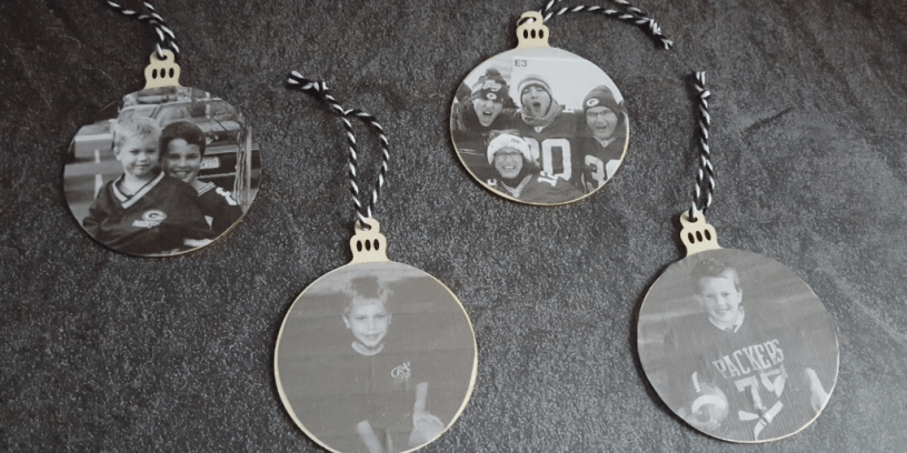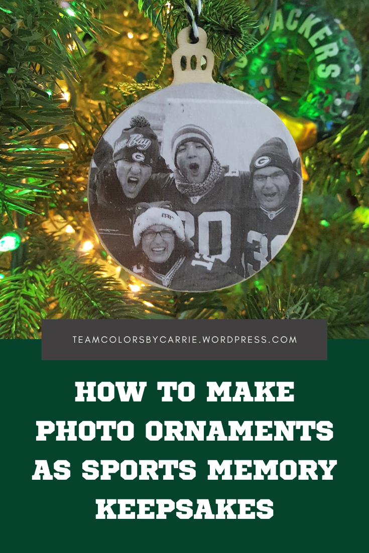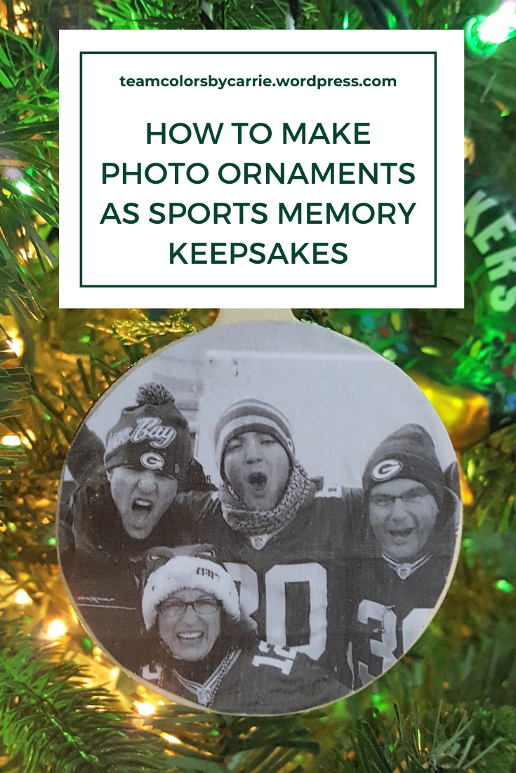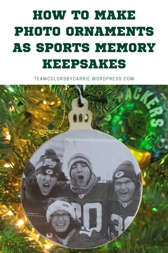 So today I’m going to show you a really easy way to include some of your favorite sports memories on your Christmas tree (or nestled in a wreath, hanging from a garland or as package tags or tie-ons).