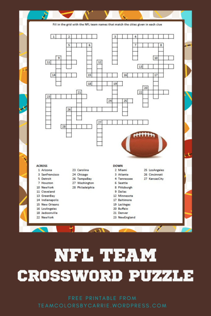 Just download the file below and print out as many copies as you need. The puzzle should be really easy for football fans, as the clues are the names of the cities where all of the NFL teams reside, and you just fill in the crossword grid with the matching team names!