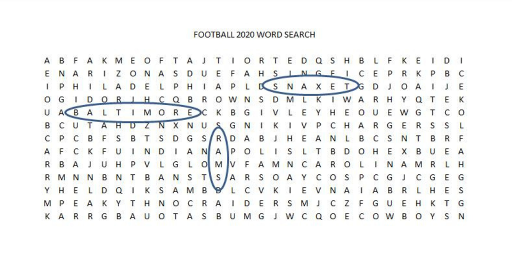 Have a race to see who can be first to find all of the team names in this Football Word Search.