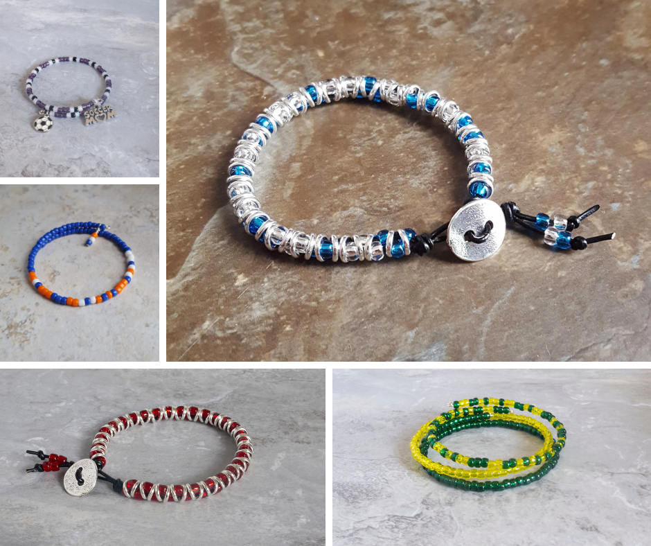 Let’s start with Beaded Bracelets, which she’ll love in all of her favorite colors! In her sports team colors, they become a great accessory for her game day outfit.