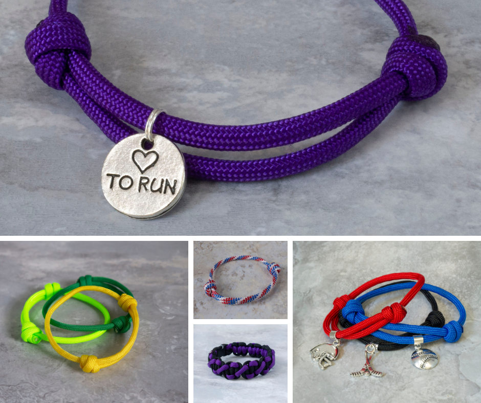 When mom is just as likely to be pursuing her own sporting endeavors as she is cheering in the stands, coaching first base or keeping the kids out of trouble on the sidelines, Paracord Bracelets can take the heat, and come in 30 colors!