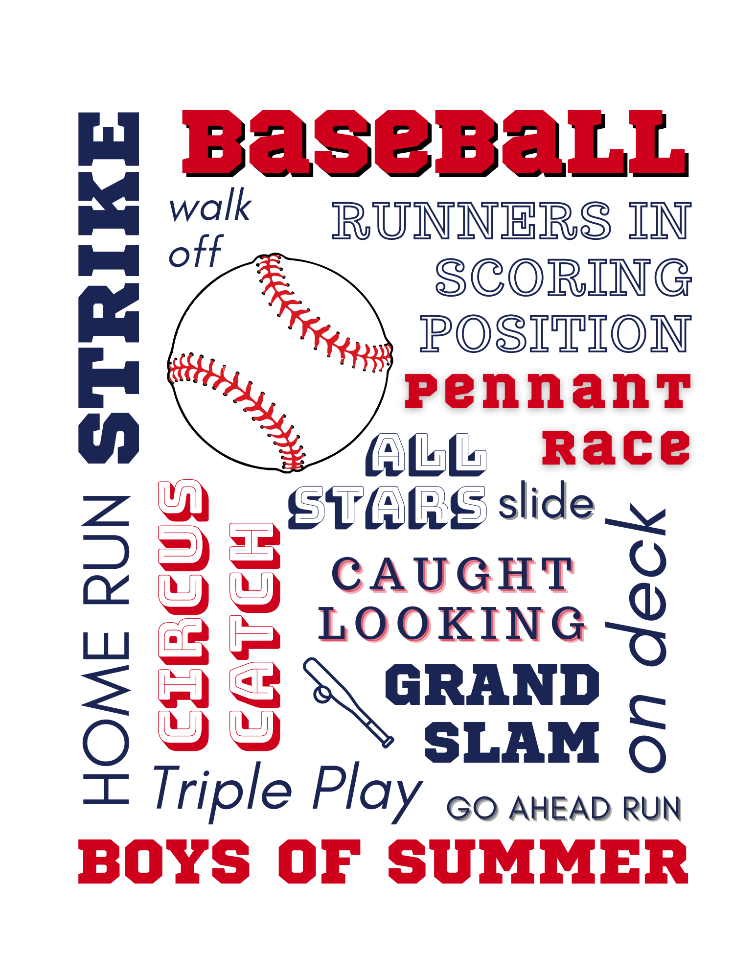 Just download the pdf below, then print it out on your home printer or at a local office supply shop. Then lay it on your snack table, tack it to the wall, or stick it in a picture frame! It’s a fun and easy way to add a touch of baseball-themed creativity to your space, and it’s sure to be a hit with fans of the game! Easy peasy, right?