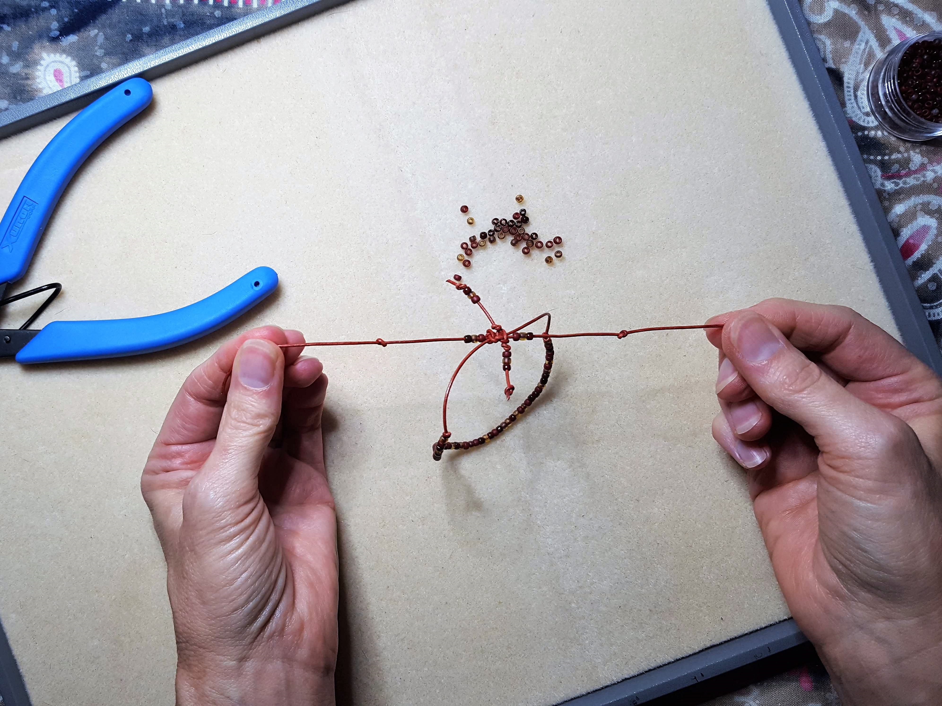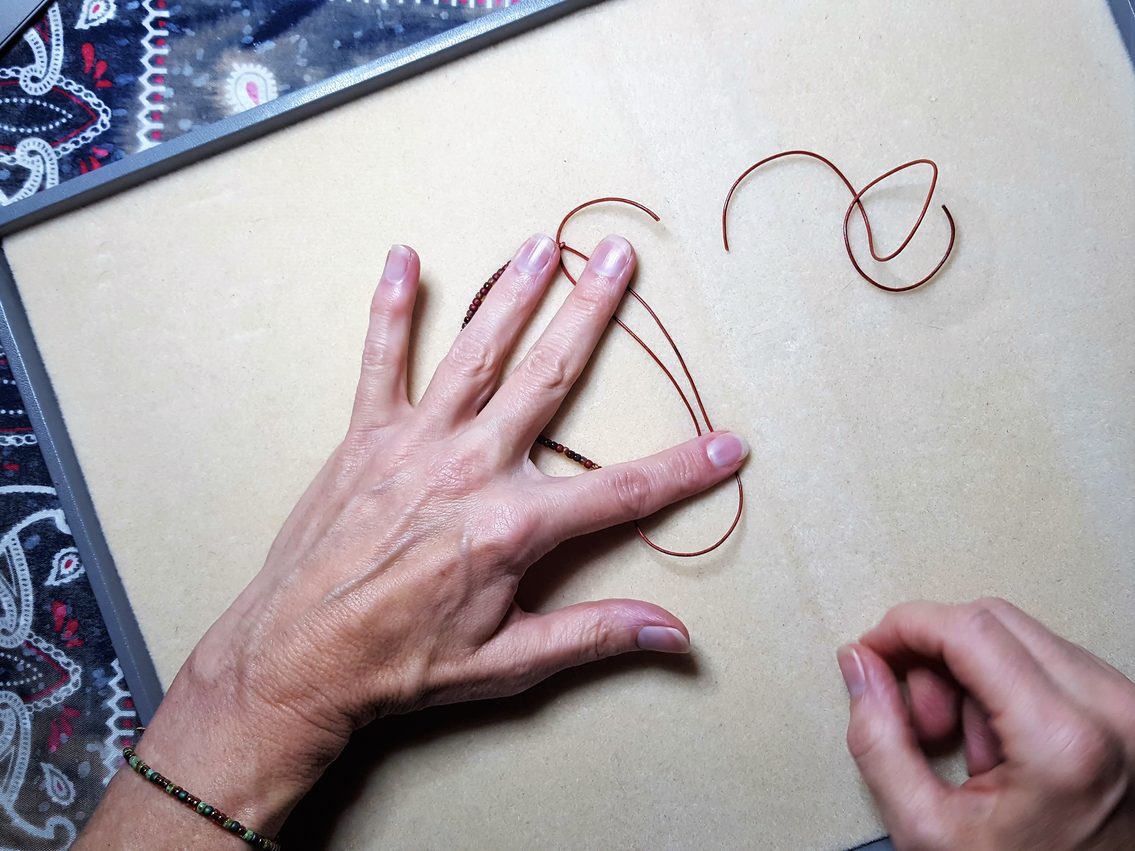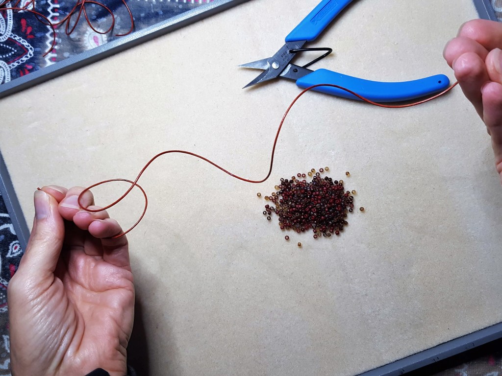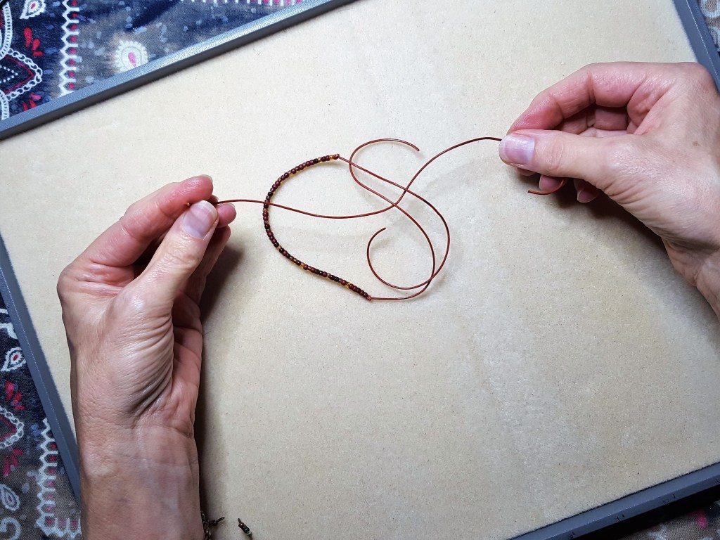 Overlap the long, unbeaded ends of the bracelet, and lay it flat on your work surface.