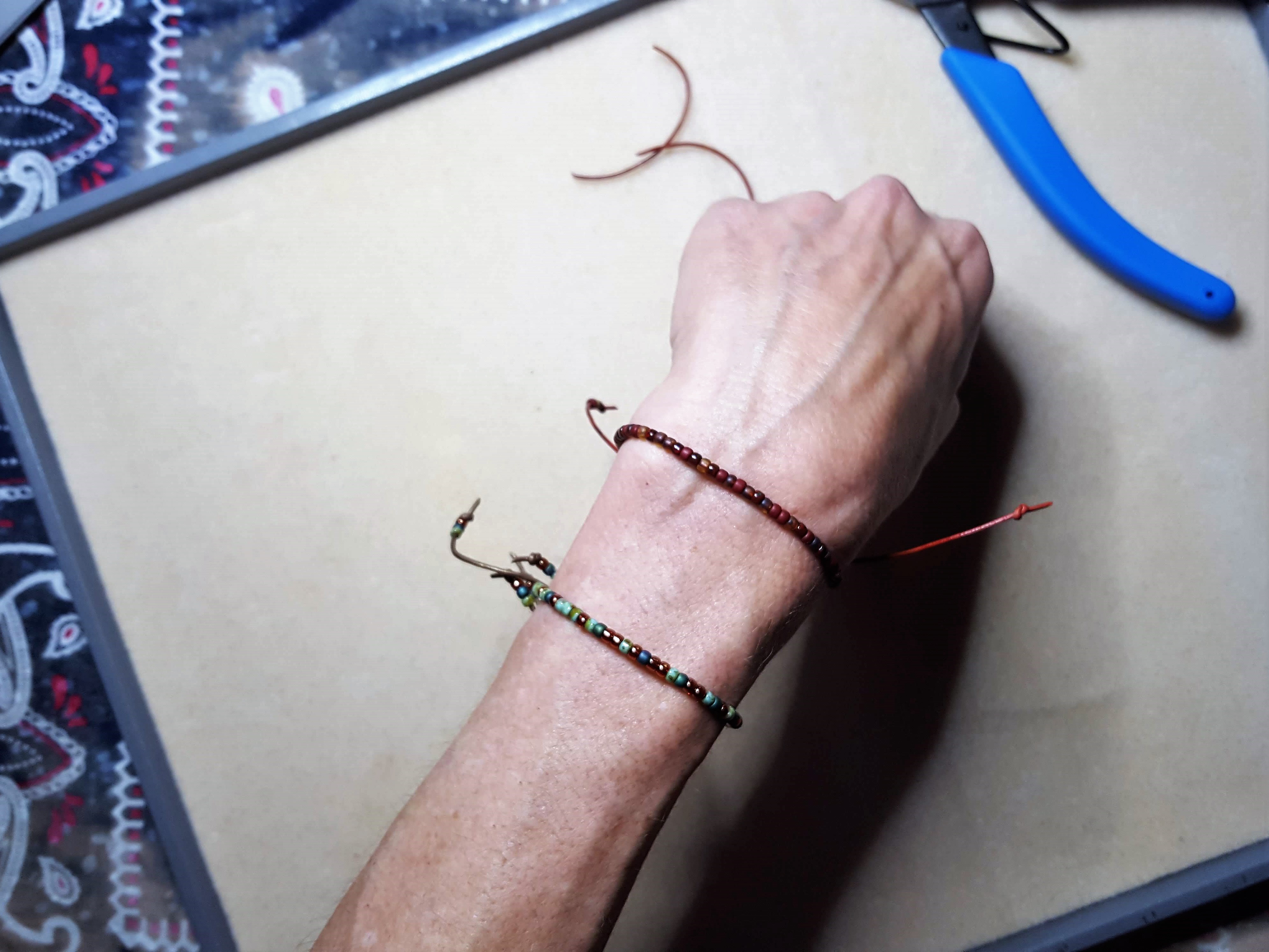 Slide the bracelet over your hand, and adjust as needed (using the sliding knot), to be sure the bracelet is long enough to put on.