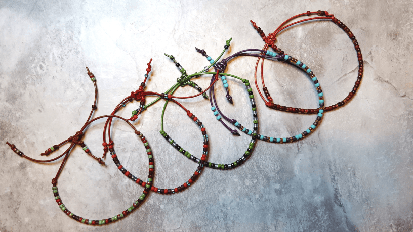 And your finished bracelet is ready to wear! I found it easiest to tighten the sliding knot when I used a finger to hold down one end while I pulled on the other!