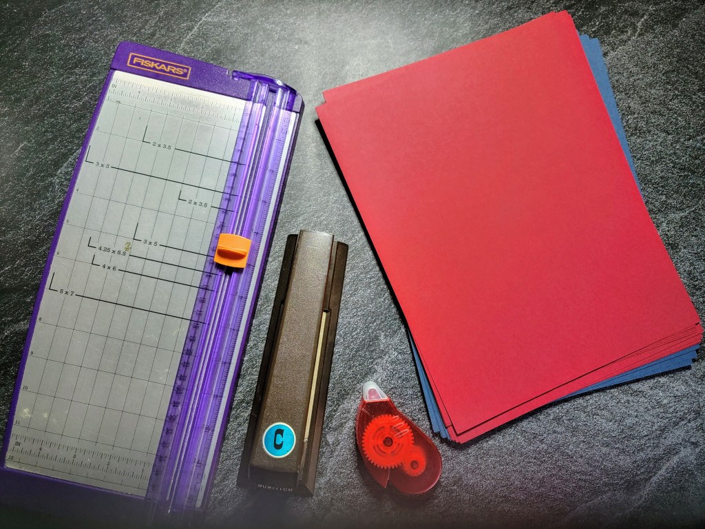 - Colored printer or scrapbook paper (try a bright color mix or a pastel mix you can find on Amazon)