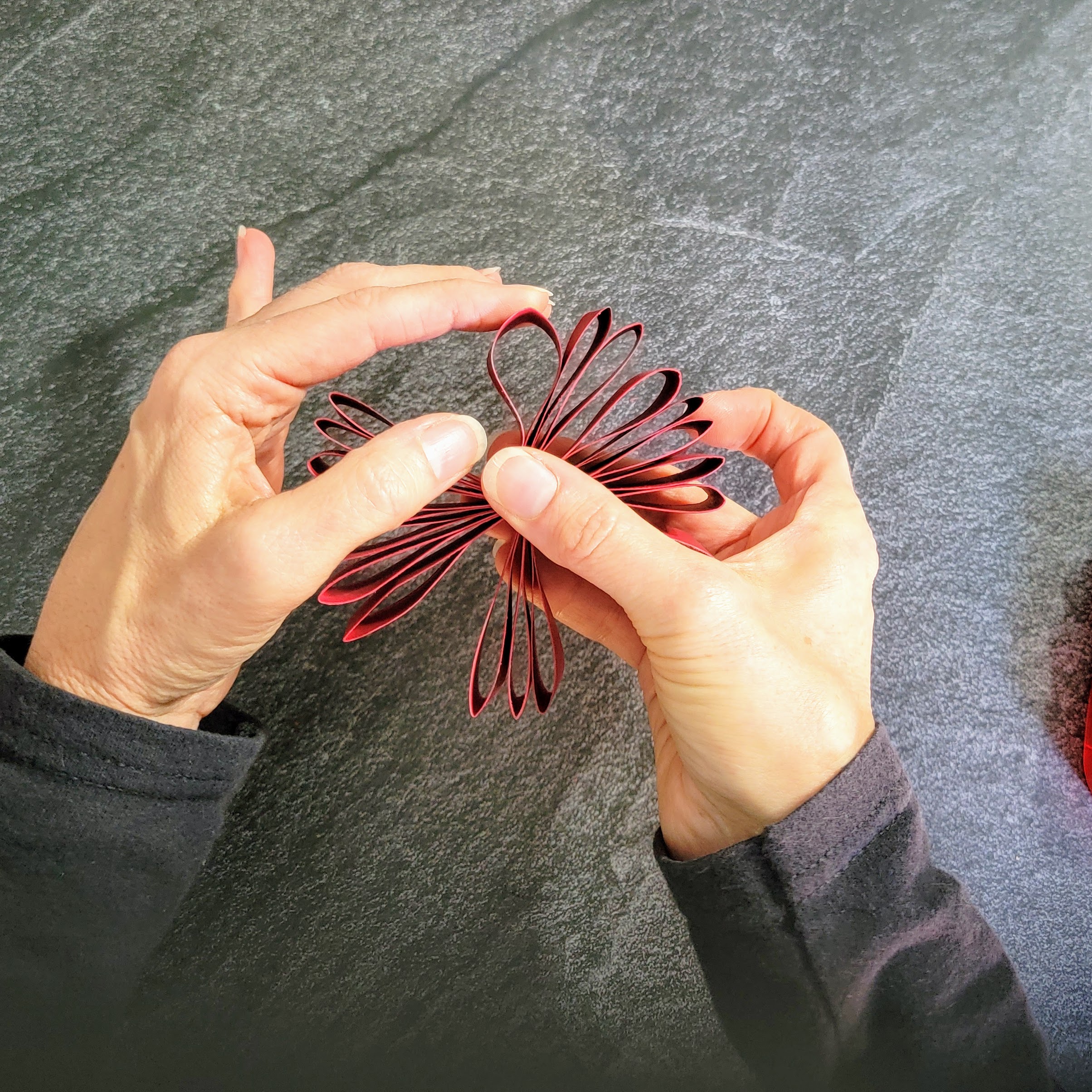 Repeat for all of the other paper strips, making sure you bend them all in the same direction.