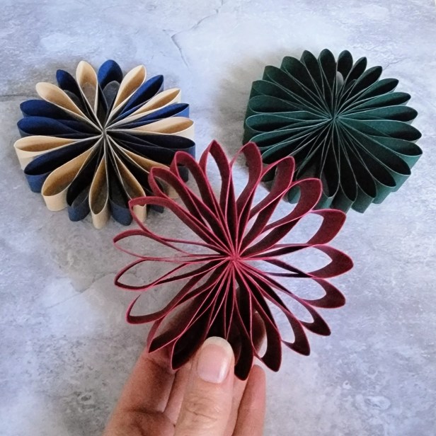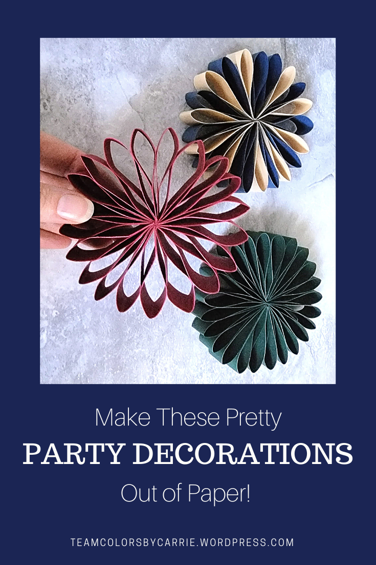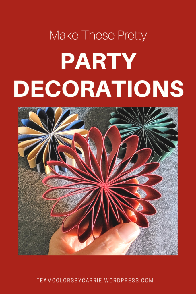 These pretty paper decorations remind me of flowers, and I can see them sitting on the food table at your next game day party, a bunch hanging on the wall as a back drop for a birthday or anniversary party, or hanging from the tree when you start your Christmas decorating. Just change out the colors to fit the occasion, and you’ll be all set!
