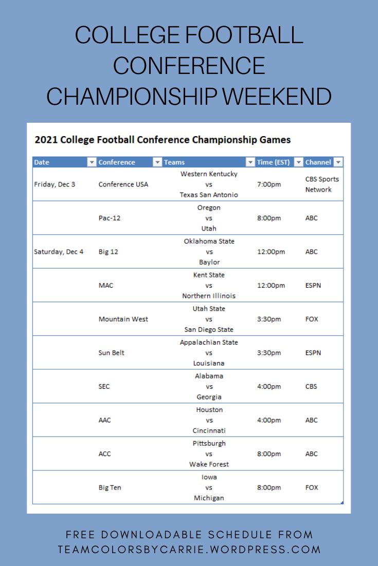 College football season has flown by, and here we are, ready to watch all of the conference championship games this weekend! Its time to buy drinks and snacks, and plan your weekend viewing schedule, so here’s the complete list of games, times and TV stations for FBS Championship weekend: