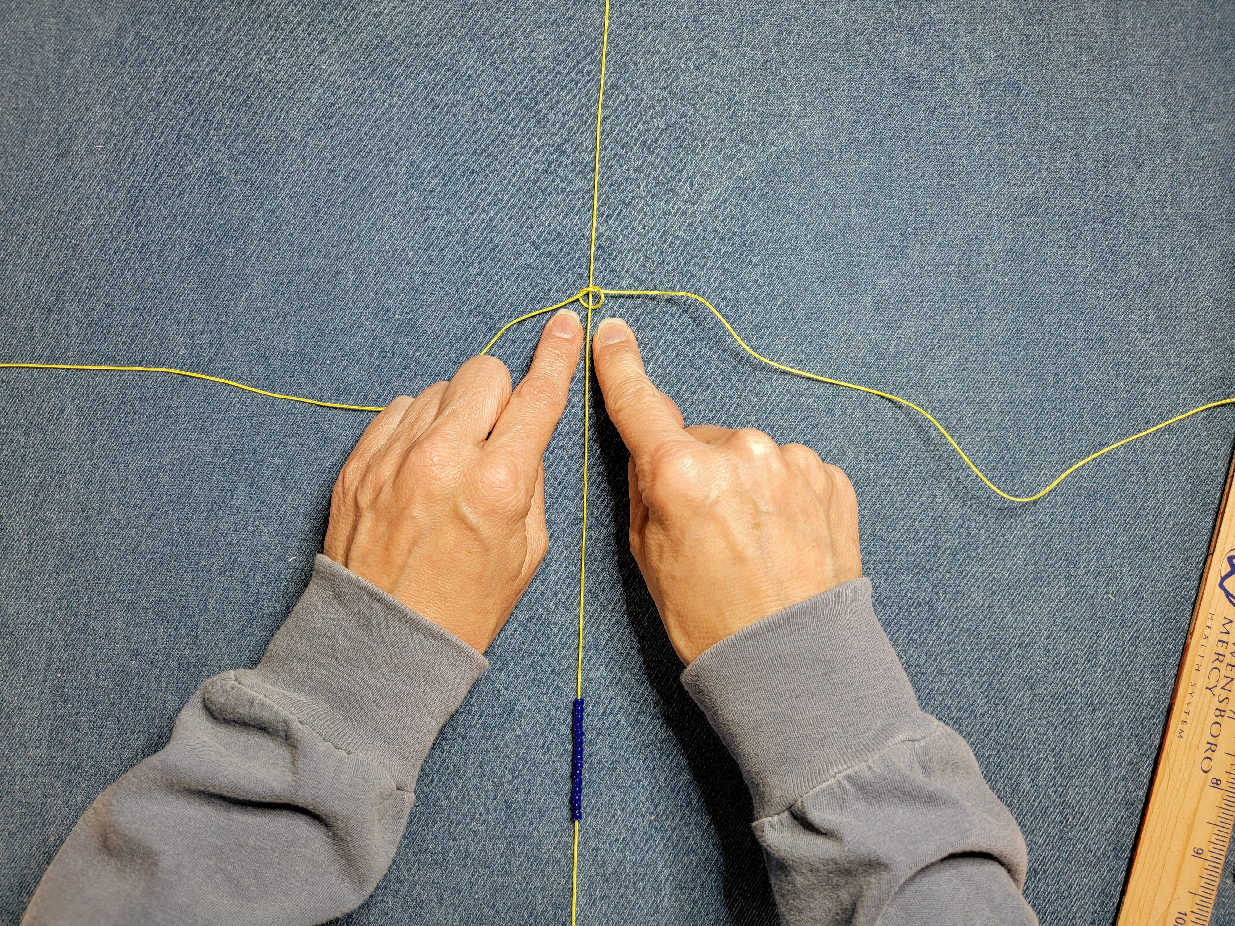 c. Use a piece of tape to anchor one end of the 18″ base cord to your work surface.