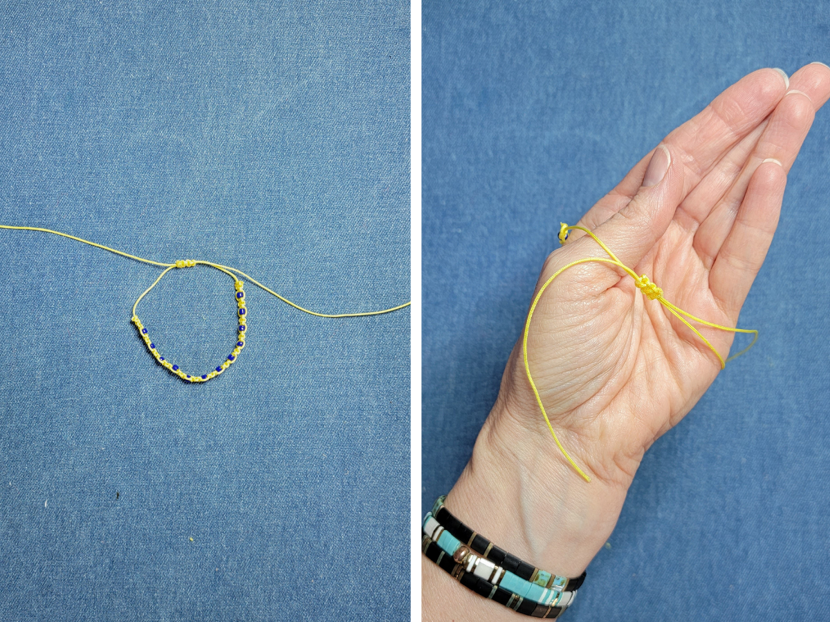 f. Slide the bracelet onto your wrist, then pull on the dangle ends to snug it up to your preferred fit.
