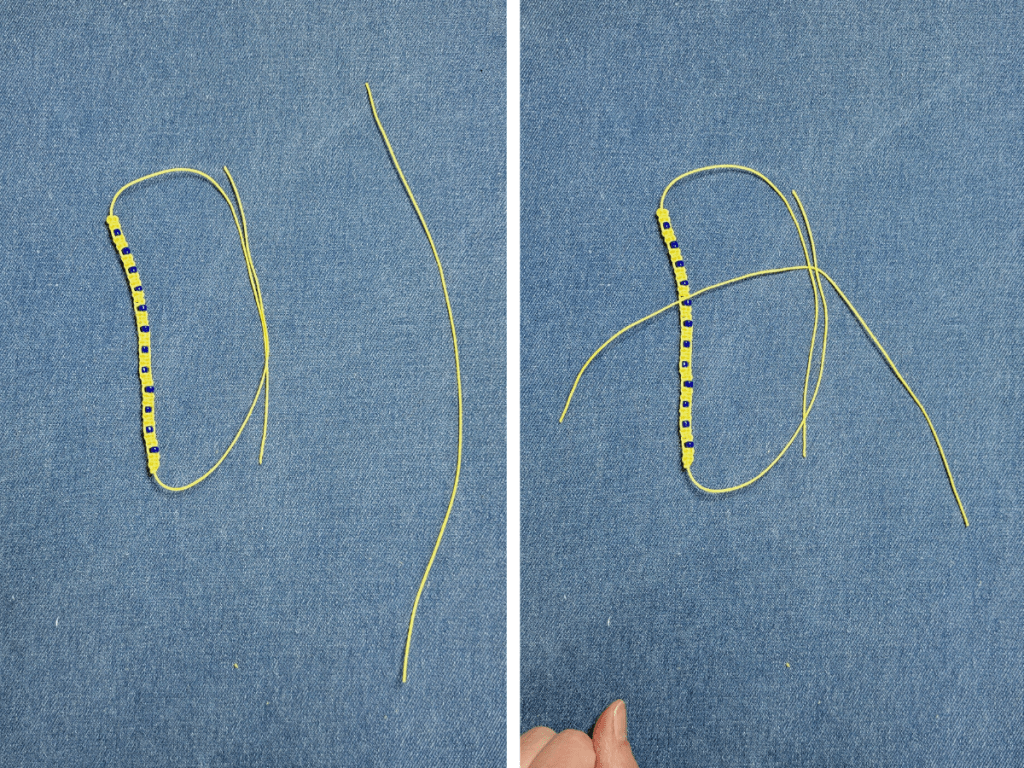 a. Remove the tape from the base cord, and lay your bracelet on your work surface with the loose ends overlapping.