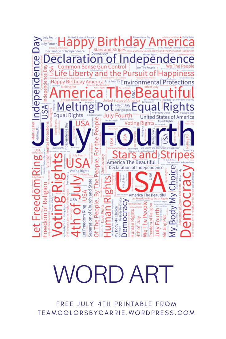I put together some free 4th of July printables again this year, and stuck with the word art style graphics I’ve been a little obsessed with recently. And at the risk of ticking off a few of my followers, I added my own personal beliefs to the words I chose to include, based on current events. This, my friends, is what America means to me: