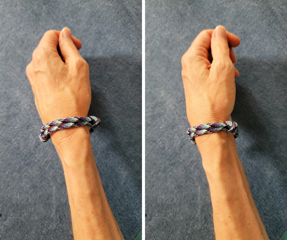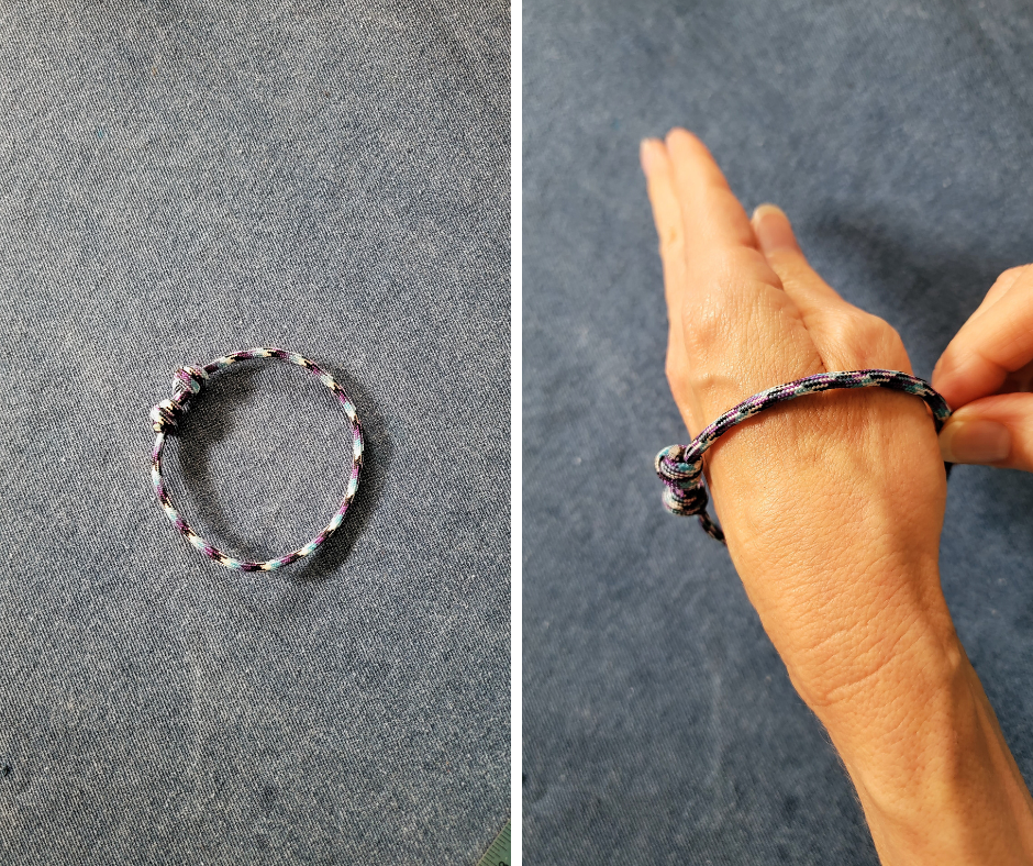 You can see how the bracelet’s sliding knots work below. Slide them open to fit over your hand: