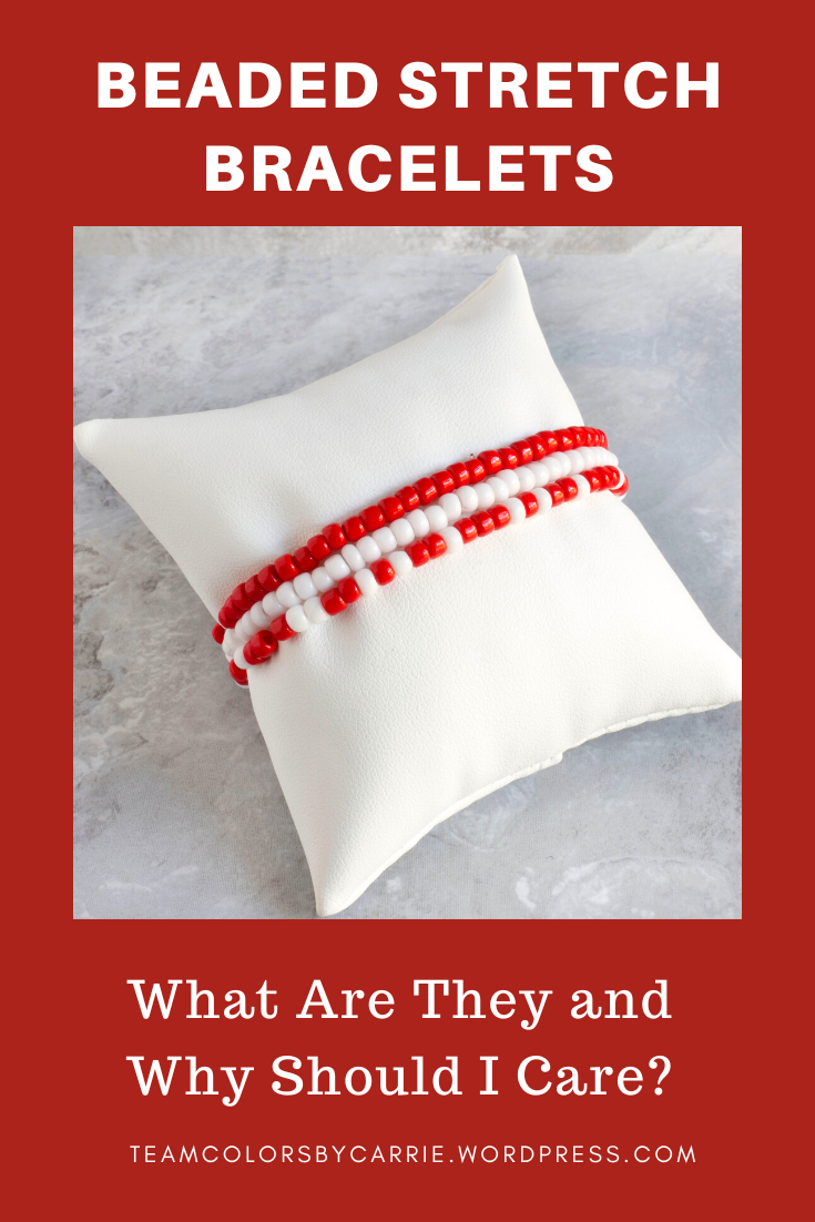 Have you ever wondered why beaded stretch bracelets are so popular? Judging from the questions I get asked about some of the jewelry I sell in my business, Team Colors by Carrie, I’d say the answer is yes!