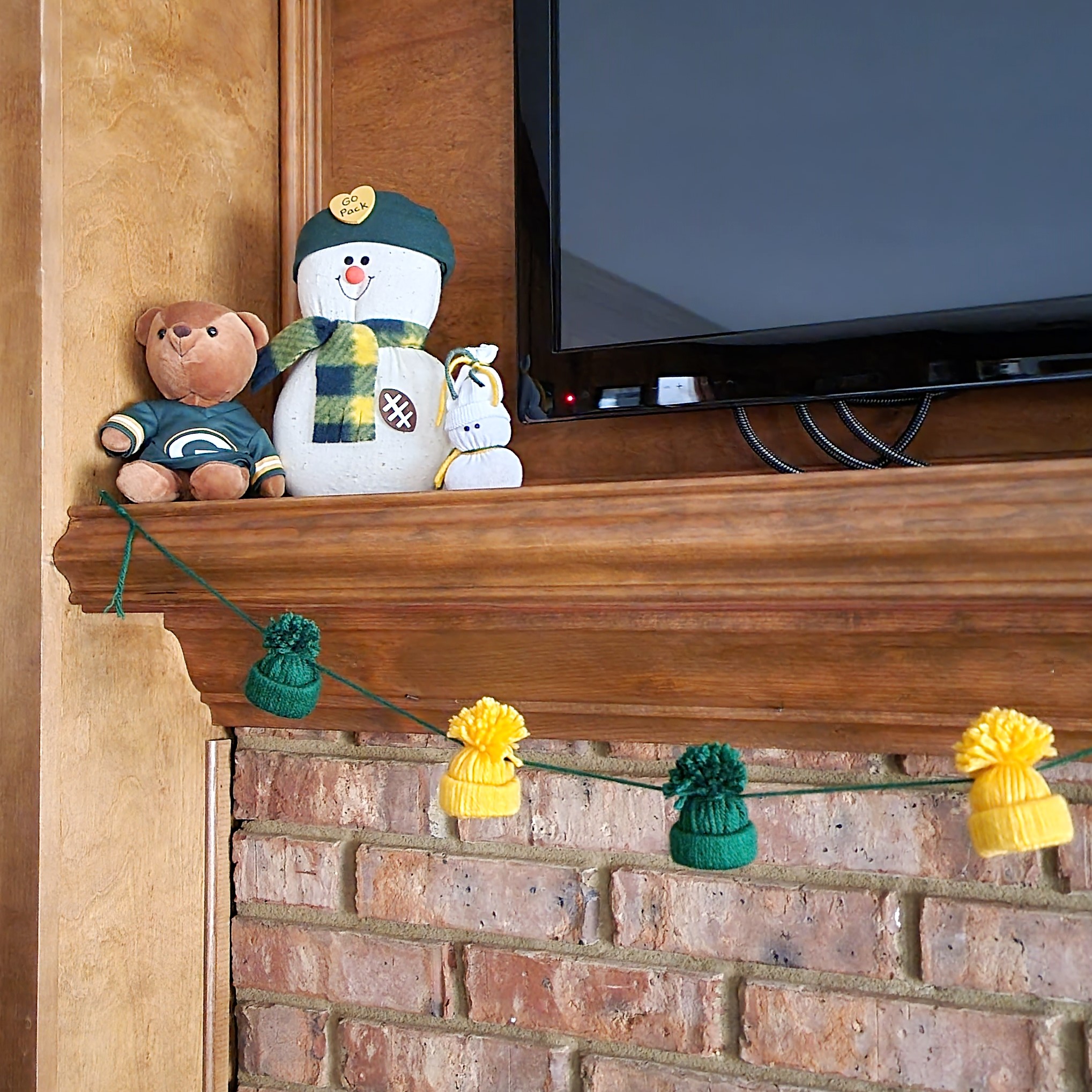 For those of you who have teams still playing, I put together a fun, DIY decoration that would be great for your game watching parties! These mini winter hats are made from yarn, and look adorable when strung up as a garland!