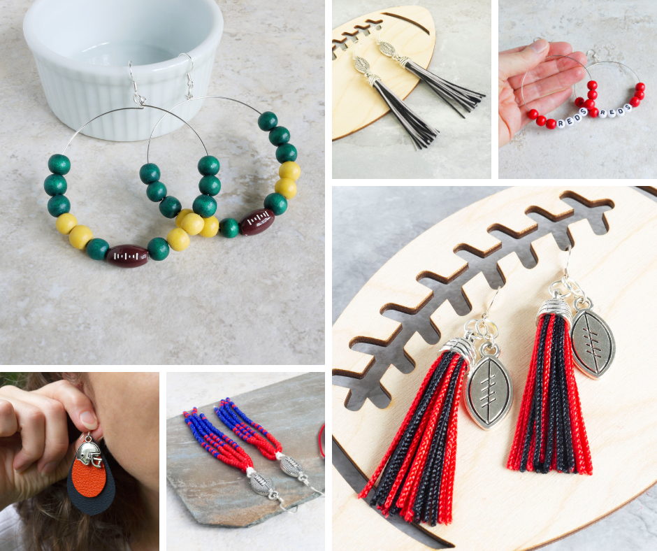- Classic tassel earrings, a fan-favorite, are back in action and ready to bring the heat. With football, football player, and football helmet charm options, they’re the ideal accessory for any die-hard football enthusiast. And guess what? You have the freedom to customize them with a single color or go all out with two or three of your team’s signature hues – it’s all about showcasing your true colors in style!