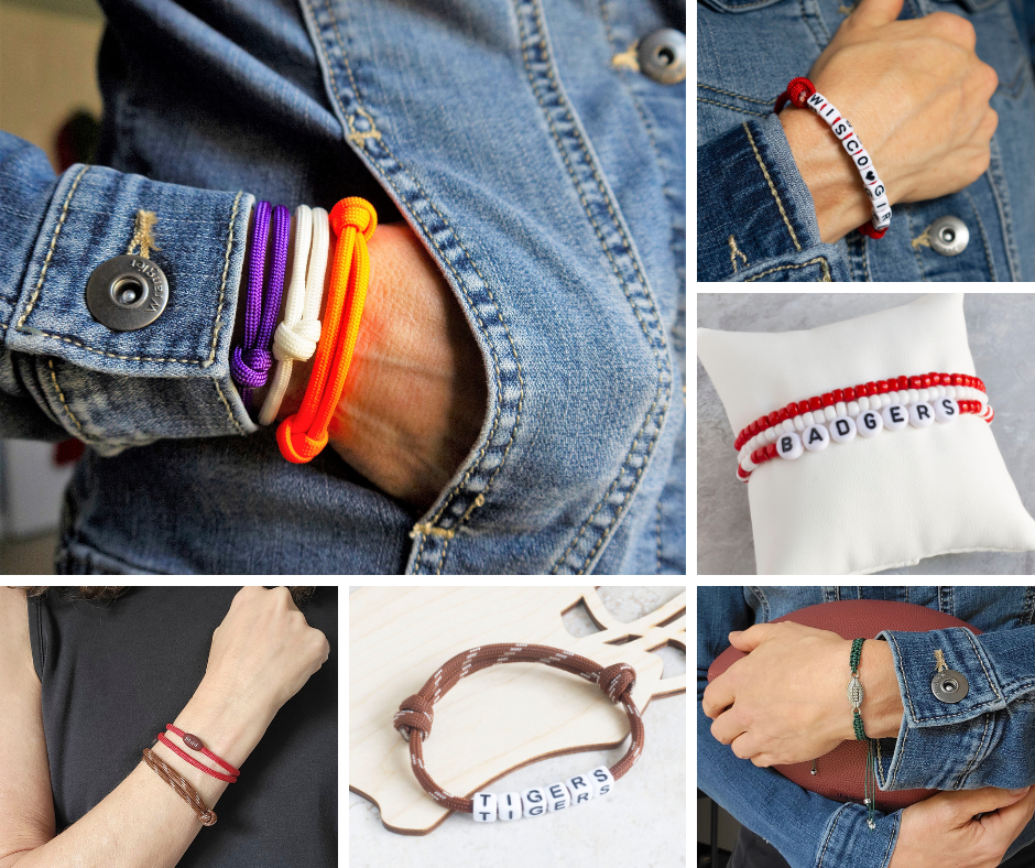 - If you’re looking for something more chic and minimalist, beaded stretch bracelets are your perfect match. With their bold colors and endless personalization options, they’ll give your game day outfit an instant upgrade!