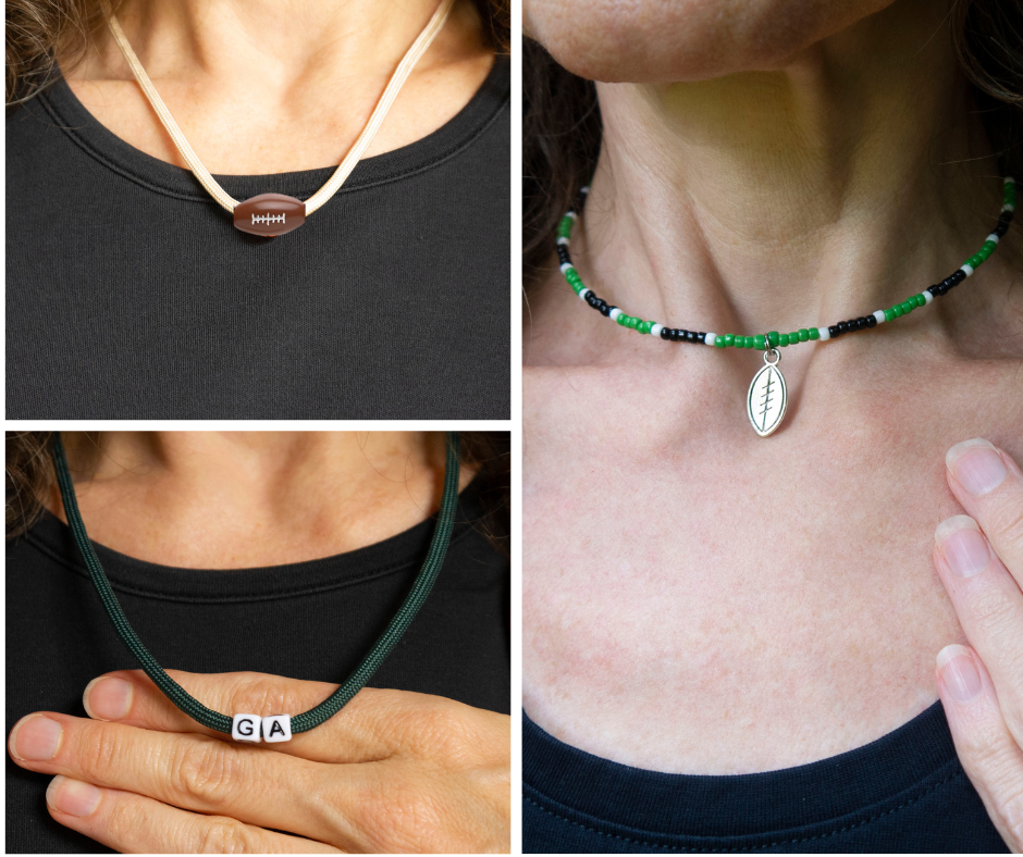 - For fans who adore the chic charm of choker necklaces, I’ve got something special just for you! Feast your eyes on beaded beauties handcrafted in your team’s vibrant colors and featuring delightful football or football mom charms. These necklaces are an absolute game-changer, elevating your game day look from ordinary to extraordinary.