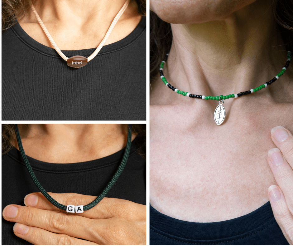 Game day glam doesn’t stop at bracelets; it’s time to bring the bling with football-inspired necklaces that will take your style to the end zone!