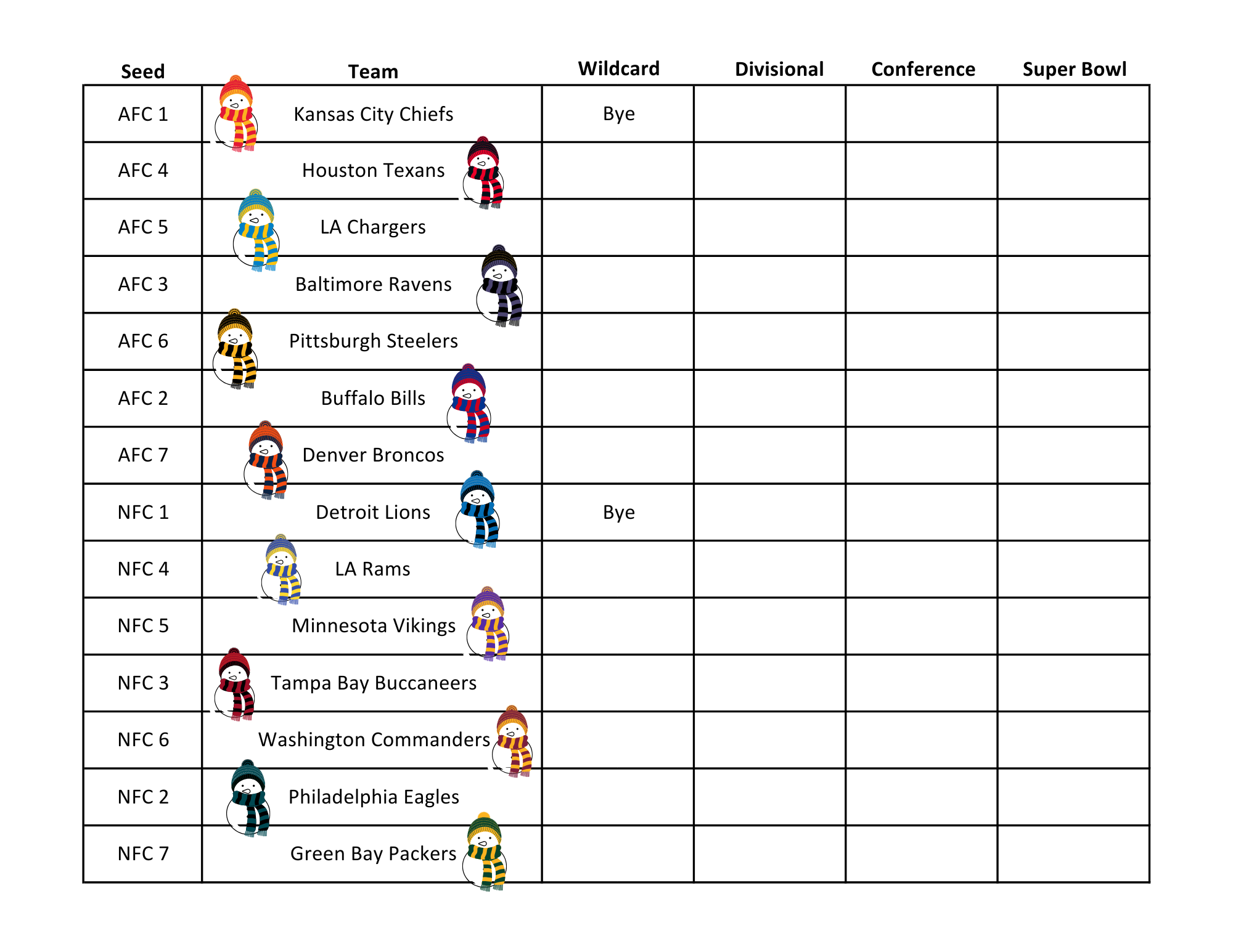 As a fun bonus, I’ve also included a file of the playoff bracket, decorated with the matching snowmen!