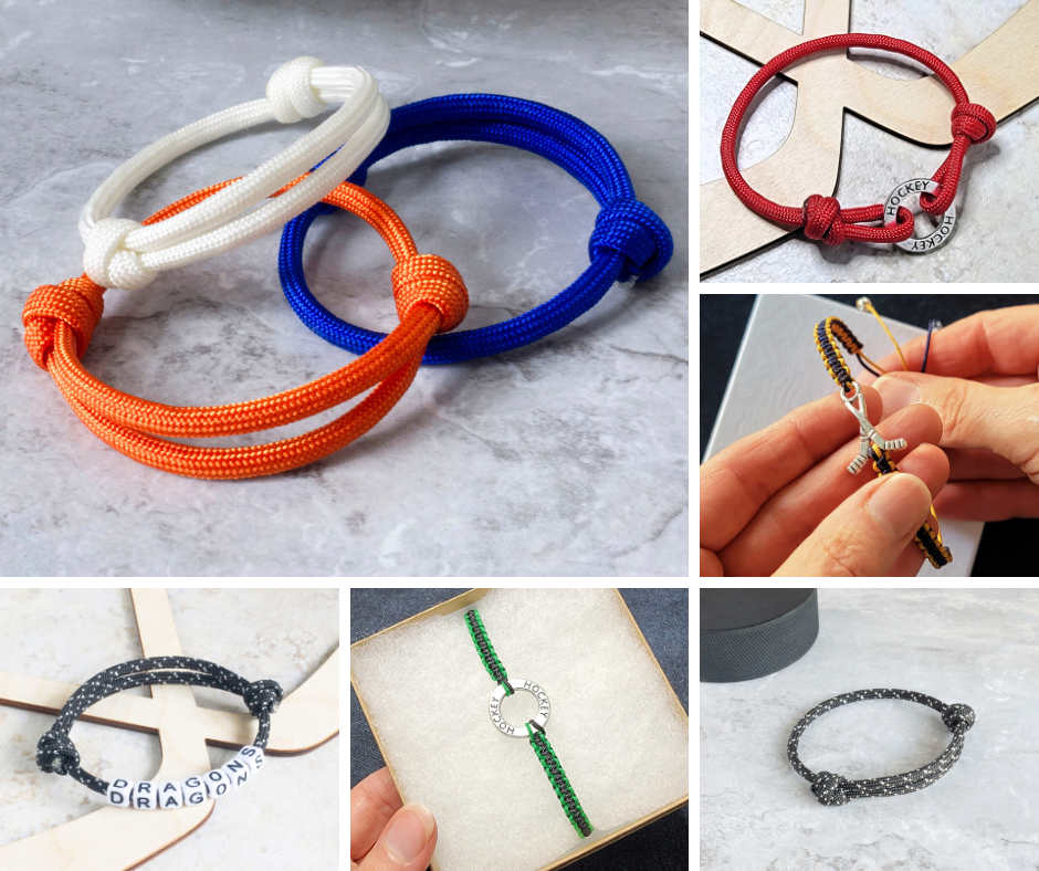 - Paracord bracelets are true all-stars, available in a wide range of bold color combos to match any team on the ice. Want a stack in your player’s team colors? Or maybe a patterned design that gives a nod to the sport? The options are endless! Even better, you can take your rink-side style up a notch with personalized paracord bracelets — add your team’s name, your player’s jersey number, or even a fun hockey slogan. Total game-changer! 🏒