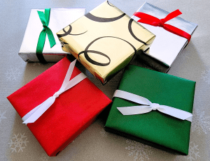 I keep it simple, seasonal, and sweet with colored paper, a touch of ribbon, and a sprinkle of holiday cheer.