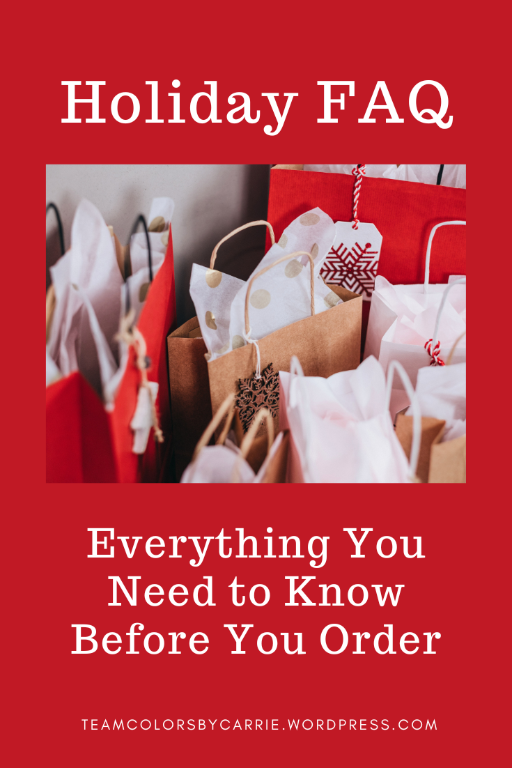 The holidays are coming fast (yay!), which means itโs time to start checking those names off your gift list. Iโve put together a quick FAQ with everything you need to know about ordering, shipping, and gift wrapping this season from Team Colors by Carrie.
