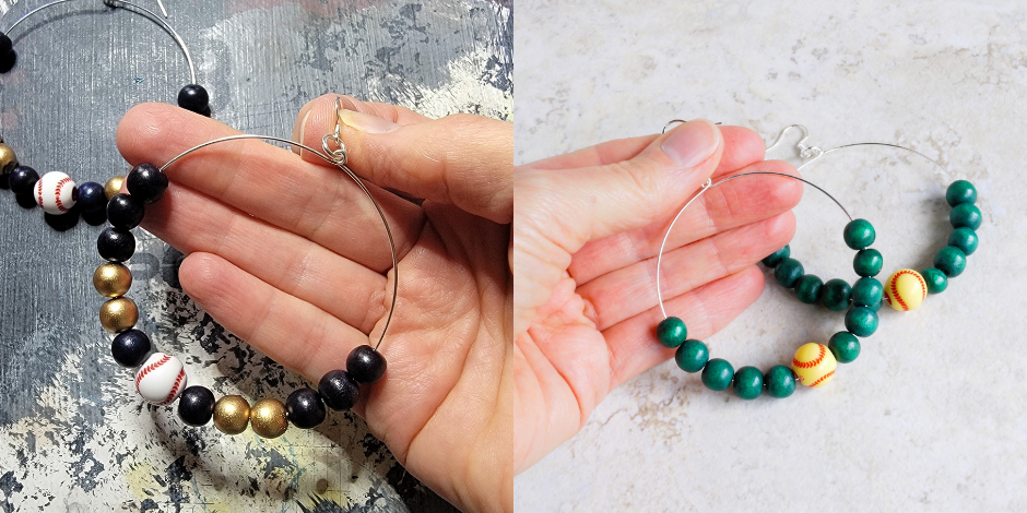 If tassels aren’t quite your thing and you’re craving something a little bolder, hoop earrings are an easy next play. Designed in team colors and finished with baseball or softball-themed beads, these hoops are lightweight, eye-catching, and made for fans who like their game day style with a little extra personality.