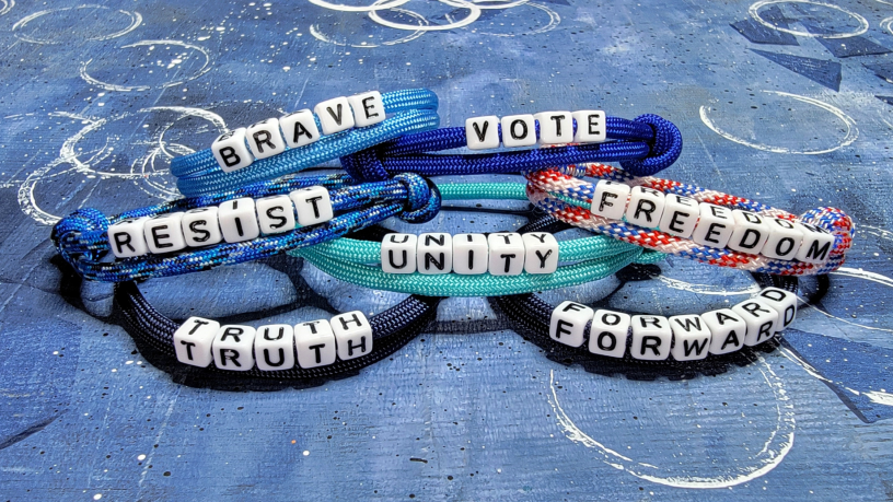 That’s exactly what inspired my Team Democracy bracelet collection, where each piece is centered around words that reflect values, strength, and connection. What started with a single RESIST bracelet has grown into a collection of meaningful, handmade designs created for people who want to wear what they believe in.